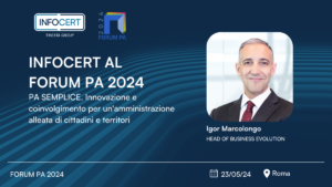 Domani, 23 maggio alle 14:30, Igor Marcolongo, Head of Business Evolution in InfoCert, parteciperà al panel “PA SEMPLICE. Innovazione e coinvolgimento per un’amministrazione alleata di cittadini e territori”